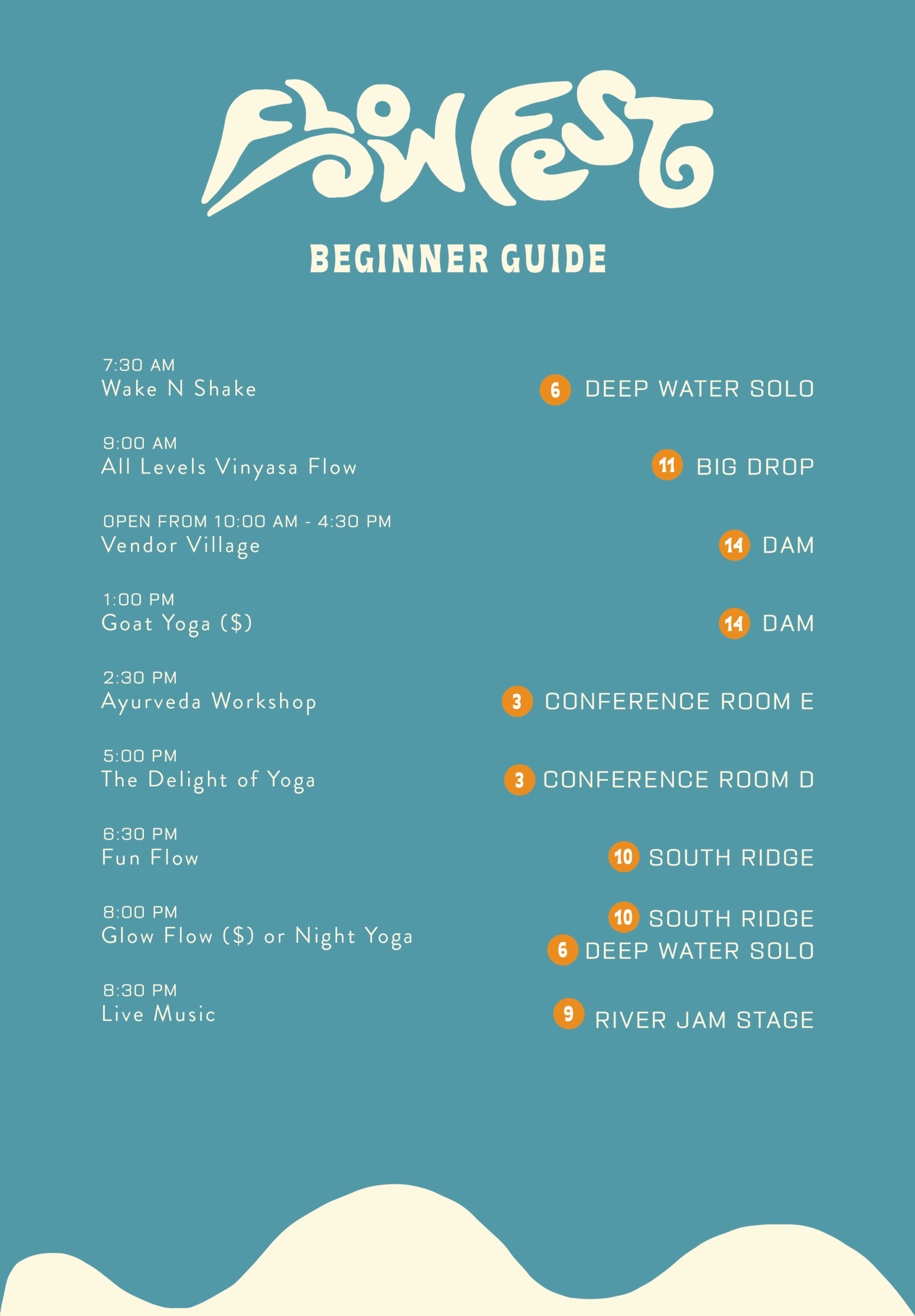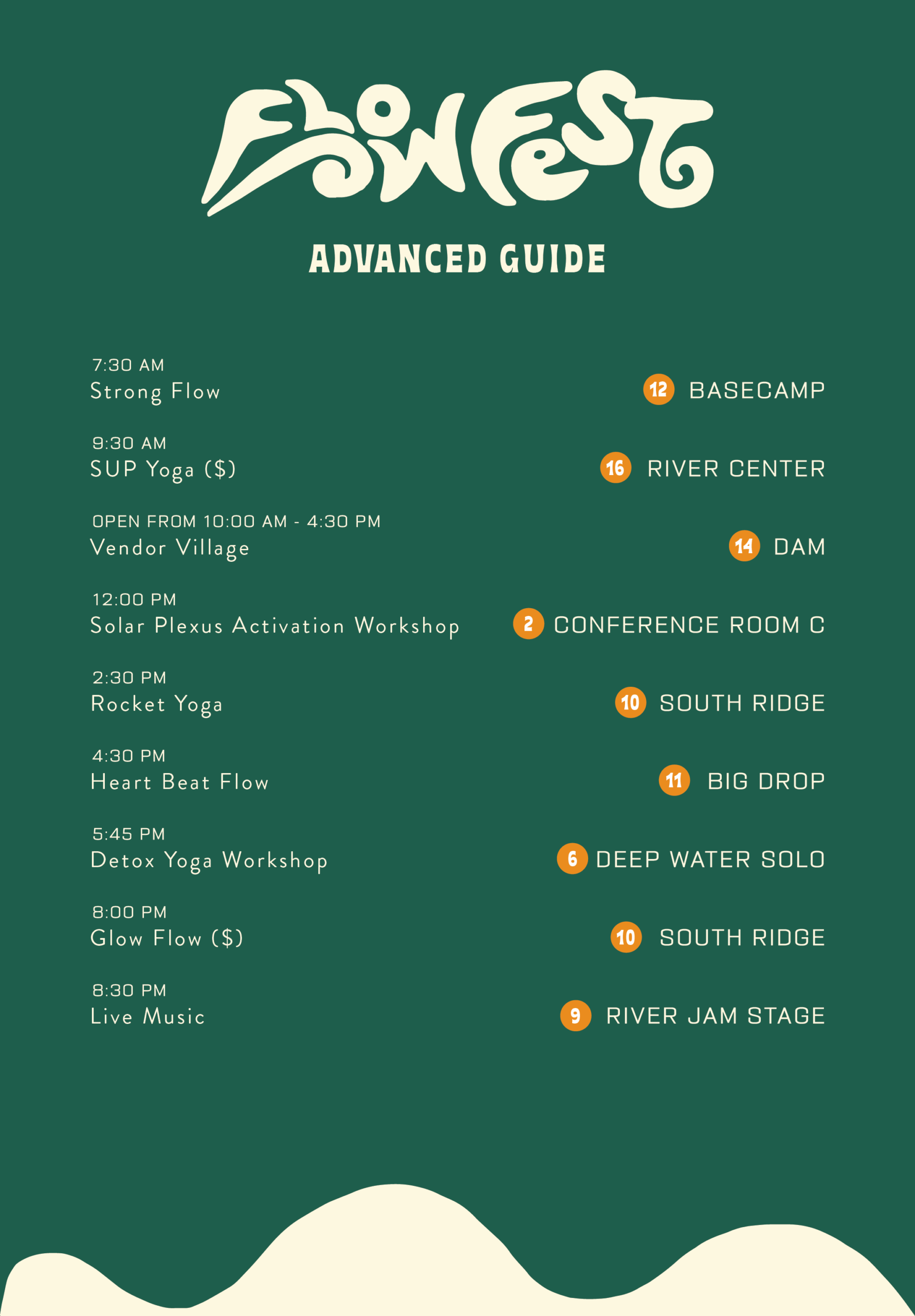Flow Fest features 100+ practices and workshops for yogis of all skill level. Plan ahead for a full day of flow with Skill Level Guides, Whitewater’s recommendations for making the most of your Flow Fest experience: