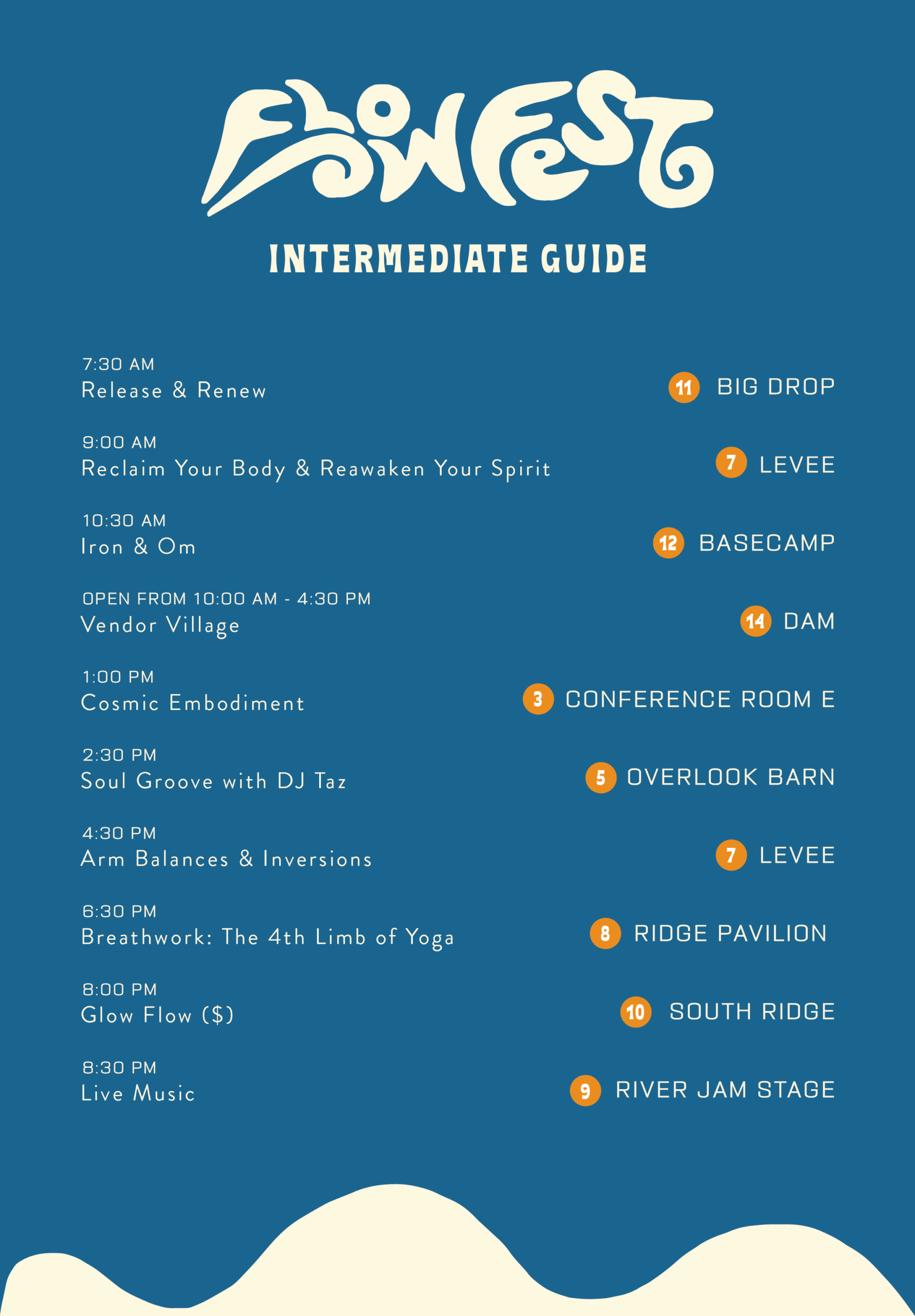Flow Fest offers 100+ practices and workshops from 7:30 am – 8:00 pm. Below is a list of new classes and elevated experiences coming to Flow Fest in 2025: